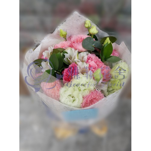 6枝特選粉紅玫瑰和桔梗, 當季襯葉