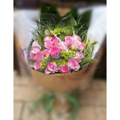 20枝精選粉紅玫瑰, 當季襯葉及時令伴花