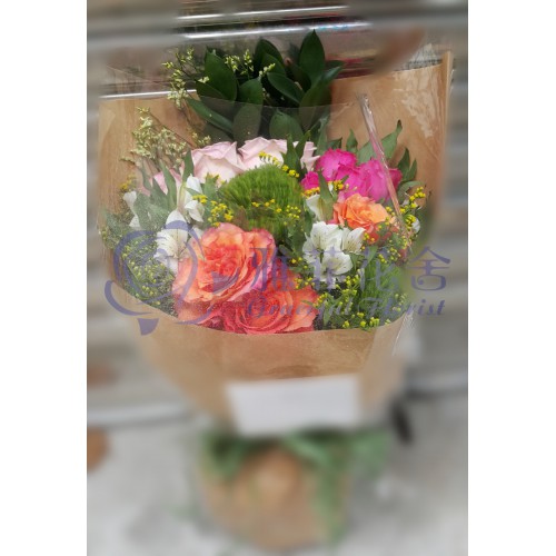 3色肯亞玫瑰各3枝和時令小百合,當季襯葉及時令伴花