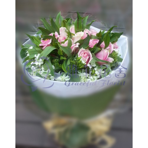 8枝粉紅玫瑰, 當季襯葉及時令伴花