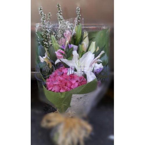 當季繡球花和精選百合,當季襯葉及時令伴花