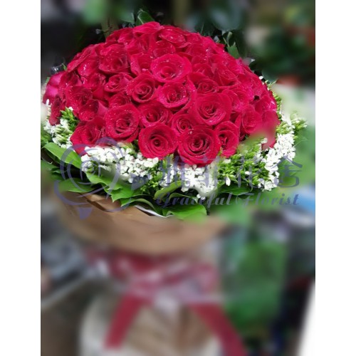 99枝頂級紅玫,當季襯葉及伴花
